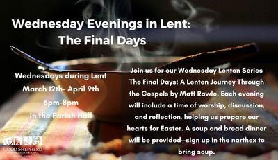 Wednesdays in March from 6:00 - 7:00 PM in the Parish Hall